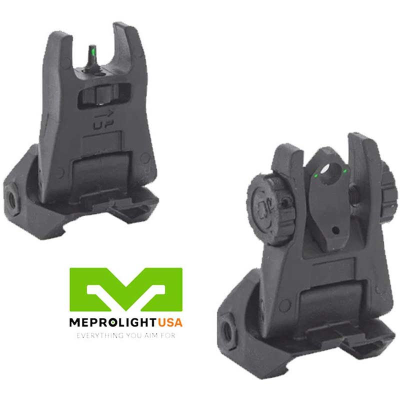 Flip Up Backup Sights 2 Dot Rear Green Self Illuminated for AR15 in Black