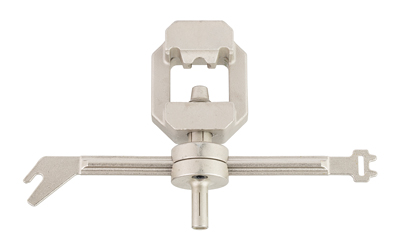 Designed to perform a wide variety of functions on a wide variety of AK and other AK-type rifles. Nickel-plated finish for superior corrosion resistance. Heavy-duty design, made from 4140 steel for durability. Main body built to prevent flex and assist in loosening tough front sights. Long handle removable wrench provides excellent leverage to ease movement of the pusher. The body features a built-in pointer and markings on the pusher to track movement when adjusting windage and elevation. The handle includes a gas tube wrench, a handguard cap lever wrench, and multi-function nubs for muzzle brake detents or recoil button compression. Each hash mark adjusts bullet impact by approximately 1.0 MOA, depending on barrel length.