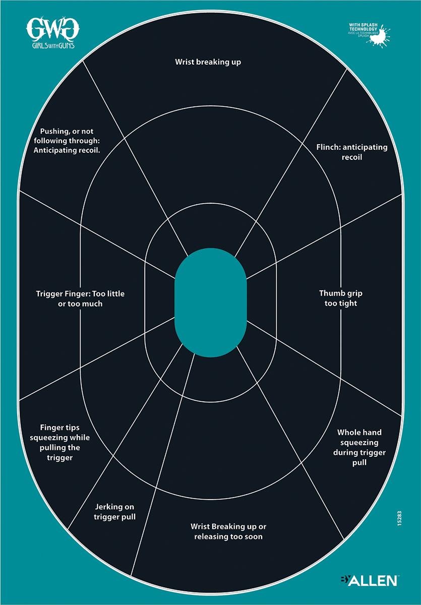 The Girls With Guns Oval Splash handgun trainer adhesive target is designed to make shooting your favorite firearm a breeze. Made in the USA.