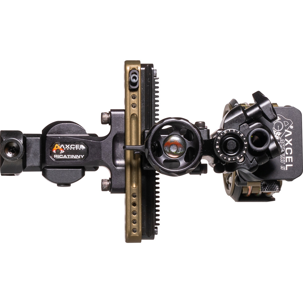 The Axcel LANDSLYDE Picatinny Slider Sight, paired with the AccuStat II Micro Pin, is a state-of-the-art tactical bowhunting sight designed for the archer who demands the best. It features a robust Picatinny mounting system for stability, a rapid adjust knob for swift elevation changes, and smooth gear action for quiet movement. True 1st/2nd/3rd axis adjustments provide unparalleled accuracy. The sight also includes a removable sight block and two adjustable pointers for meticulous aiming. Crafted with 8 double-sided metal scales, the LANDSLYDE offers 16 total configuration choices to cater to various shooting conditions and preferences, all while being durable enough to withstand the rigors of outdoor use.