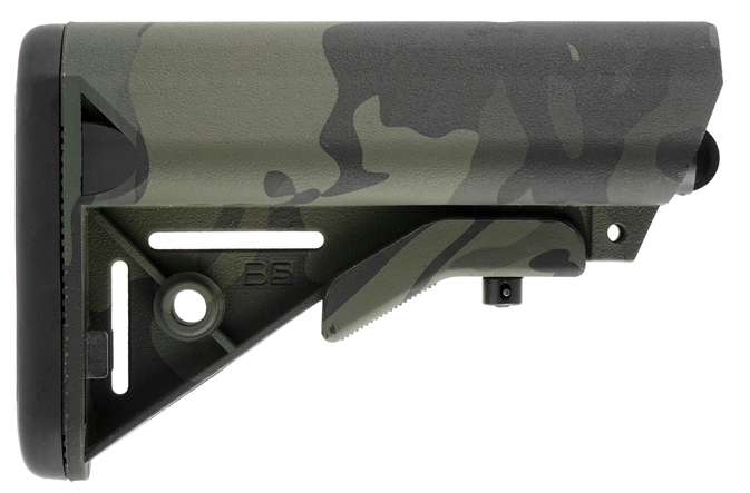 B5 Systems has taken the venerable design of the Crane NSWC designed SOPMOD buttstock and incorporated the features sought by military professionals and firearm enthusiasts. The Enhanced SOPMOD features color matched steel hardware one piece anti-rotation quick disconnect sling mounts no slip cushioned buttpad sure grip stock latch and dual water resistant storage compartments. The Enhanced SOPMOD is made of Mil-Spec materials and finishes. Proudly made in the USA. – FEATURES – Ergonomic cheek weld – Color matched steel hardware – Dual water resistant storage compartments – Fixed sling mounts and steel anti-rotational QD mounts – Cushioned none slip buttpad with built in M4 Multitasker® tool holder – Sure grip stock latch – Made of MIL-SPEC materials and finishes – Fits MIL-SPEC carbine receiver extensions – Available in all all standard colors – MADE IN THE USA – SPECS – Weight: 11.80 oz – Length: 7.43 in – Width: 2.4 in – Height: 4.93 in