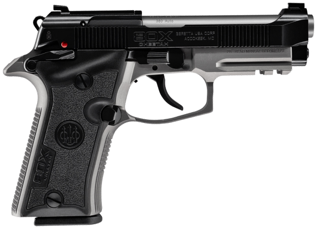 BERETTA IS BRINGING BACK THE CLASSIC .380 WITH EXCEPTIONAL COMFORT & STYLE. THE 80X CHEETAH reimagines the legendary platform with a new sleek design and enhanced features. Ergonomically redesigned for modern-day carry the 80X Cheetah includes a smaller Vertec style grip profile the X-treme S Double/Single trigger a skeletonized hammer a 10+1 round capacity and comes optics-ready out of the box. – Emphasizing the importance of training when concealed carrying Beretta has made a carry gun that is actually comfortable to carry and enjoyable to shoot. With an easier-to-rack slide lightened recoil from tuning of the slide weight spring rates and chambering in .380 the 80X Cheetah is designed with an enhanced fit and style for elevated speed and control. – For those looking for something different the 80X Cheetah comes in a premium assortment of color options with limited edition multi-tone variants and market-leading finishes. – Before we made it the most comfortable and controllable pistol available we made it a Beretta. The Beretta 80X Cheetah Style in EVERY detail. – ADJUSTABLE X-TREME S TRIGGER W/ SKELETONIZED HAMMER – A light crisp and consistent single action/double action pull. The overtravel is adjustable to shorten the reset to 1mm. – OPTIC-READY SLIDE W/ INTERCHANGEABLE SIGHTS – Comes optics-ready allowing for the ability to add an optic to improve accuracy and target acquisition speed. – VERTEC GRIP W/ FRAME MOUNTED SAFETY & PICATINNY RAIL – Allows for a more compact profile for carrying concealed. The added feature of a Picatinny rail gives the option for weapon mounted lights and other Picatinny mounted accessories. – 10-ROUND STANDARD MAGAZINE – 10-round capacity compact size and optimized ergonomics for concealed carry. – Model 80X Cheetah Gray – Magazine Capacity 10 Rounds – Barrel Length 3.9 – Grip Width 1.25 – Overall Height 4.9 – Overall Width 1.4 – Family 80 Series – Firearm Type Pistols – Activity Defense – Caliber .380 – Action Double/Single – Frame Material Aluminum Frame – Locking System Blowback – Overall Length 6.8 – Weight Unloaded 25oz – Frame Size Micro Compact – Magazine Capacity 10 Rounds – Product Segment Carry