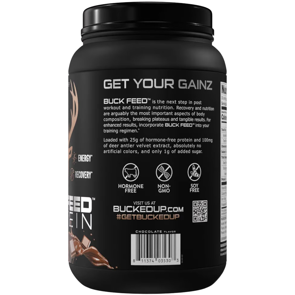 Bucked Up Buck Feed Protein is a high-quality, low-carb whey protein supplement formulated to support muscle growth, recovery, and fat loss. Each serving delivers 25 grams of hormone-free whey protein—primarily from fast-absorbing whey isolate—combined with Deer Antler Velvet Powder for added performance benefits. Designed to be easily mixed and digested, Buck Feed features no hormones, soy, or excess carbs, making it a clean and effective choice for athletes and everyday fitness enthusiasts alike. With a lineup of mouth-watering flavors, this protein offers both exceptional taste and nutritional performance at an accessible price point.