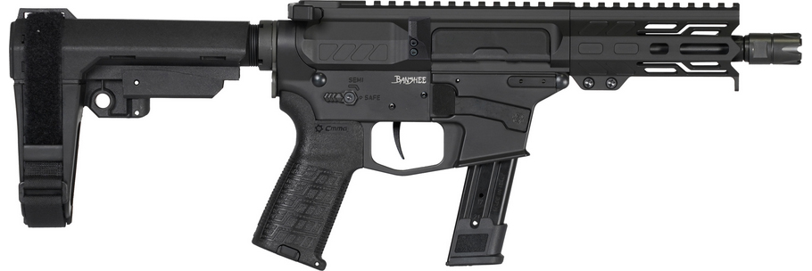 Equipped with a 5 barrel this BANSHEE is one of the shortest 9mm pistols CMMG® offers. What sets this BANSHEE apart is the Mk17 platform lower which is designed to use Sig Sauer P320/M17/M18 pattern magazines. Being able to use handgun magazines in a pistol caliber carbine or personal defense weapon allows shooters to use their existing collection of magazines mag pouches and other accessories. – Platform Mk17 – Caliber 9mm – Operating System Radial Delayed Blowback – Barrel Length 5 – Barrel Twist 1:10 – Barrel Contour MT – Barrel Material 4140CM SBN – Barrel Twist 1:10 – Muzzle Device CMMG ZEROED Linear Compensator – Muzzle Thread 1/2 x 28 – Upper Receiver Billet 6061 T6 Aluminum – Lower Receiver Mk17 Forged 7075 T6 Aluminum – Hand Guard CMMG EML4 M-LOK – Finish Cerakote Standard – Charging Handle CMMG ZEROED Ambi – Pistol Grip CMMG ZEROED Pistol Grip – Buffer Type Carbine – Receiver Extension CMMG 6 Position Fastback Extension – Stock / Brace CMMG RipBrace – Trigger Type ZEROED Drop-In Single Stage – Trigger Guard Integrated – Safety Selector CMMG ZEROED 60/90 Degree – Magazine Sig Sauer P320 21rd – Weight 4.9 lbs – Length 20.8