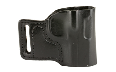 Their new E-Gat Slide is a basic neutral cant concealment OWB holster that works equally well on the strong side or cross draw. The E-Gat Slide works with both revolvers and autos and is offered only in BLACK-finished top grain leather. It is available for most medium & large autos and most small frame revolvers.