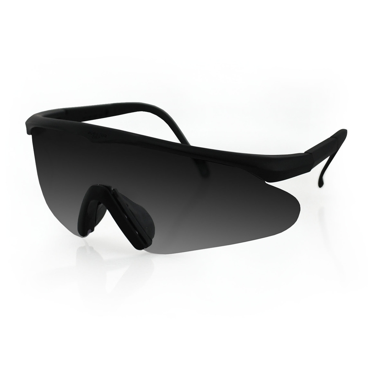 Shatter the standards with this ANSI Z.87+ approved interchangeable eyewear that is ideal for law-enforcement, military, construction, laboratory or industrial use. Extendable polycarbonate temples adjust to any size of face and are strong and thin for use under a helmet. Three shatter-resistant polycarbonate lenses are included and a comfortable clear rubber nose piece is also included along with carrying case for transport.