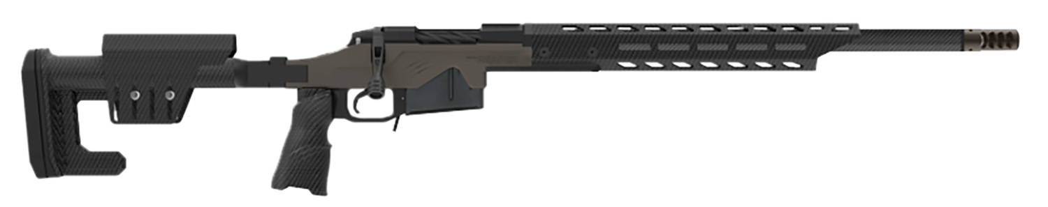 The Fierce MTN Reaper is a lighter streamlined version of the original Reaper. Expanding on the successful Reaper Platform, the rifle is ideal for high adventure hunting scenarios where every ounce is valued. The magnesium lightweight chassis design provides a rock solid platform for repeatable accuracy on the mountain. Featuring Bix’N Andy adjustable trigger; push button quick lock system, fold & lock stock; titanium 2 Lug action; spiral, fluted bolt throw; detachable box magazine; Carbon Fiber forearm M-LOK; ergo pistol grip w/thumb shelf; threaded, carbon fiber, match grade, hand lapped barrel. Includes NIX muzzle brake and 0 MOA bases.
