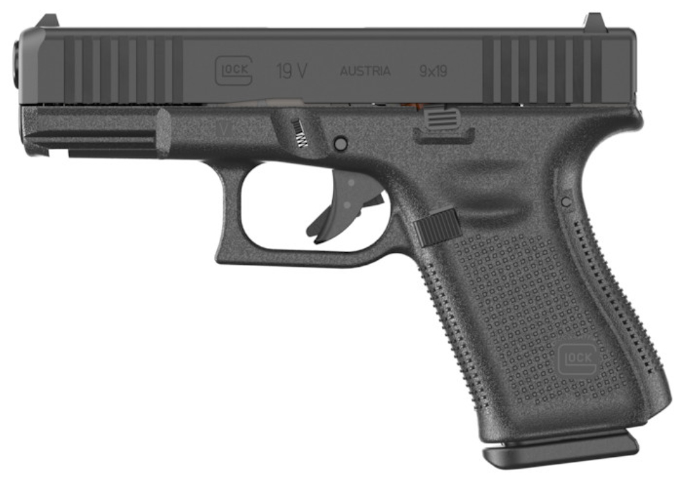 The GLOCK 19 V pistol is versatile for many roles due to the reduced size. The frame design without finger grooves allows the user to customize the grip width to accommodate any hand size by mounting the different back straps. The reversible magazine catch is changeable at user level as well as the ambidextrous slide stop lever to accommodate left and right-handed operators. The G19 V pistol features the GLOCK Marksman Barrel (GMB) nDLC surface finish front serrations an ambidextrous slide stop lever and more. – The SAFE ACTION® System is a fully automatic safety system consisting of three passive independently operating mechanical safeties. All three safeties disengage sequentially as the trigger is pulled and automatically re-engage when the trigger is released. – Caliber 9x19mm – System Safe Action® – Mag. Capacity 15 – Barrel Length 102 mm / 4.02 inch – Weight without magazine 610 g / 21.52 oz – Weight with empty magazine 670 g / 23.63 oz – Weight with loaded magazine 855 g / 30.16 oz – Trigger Pull 26 N