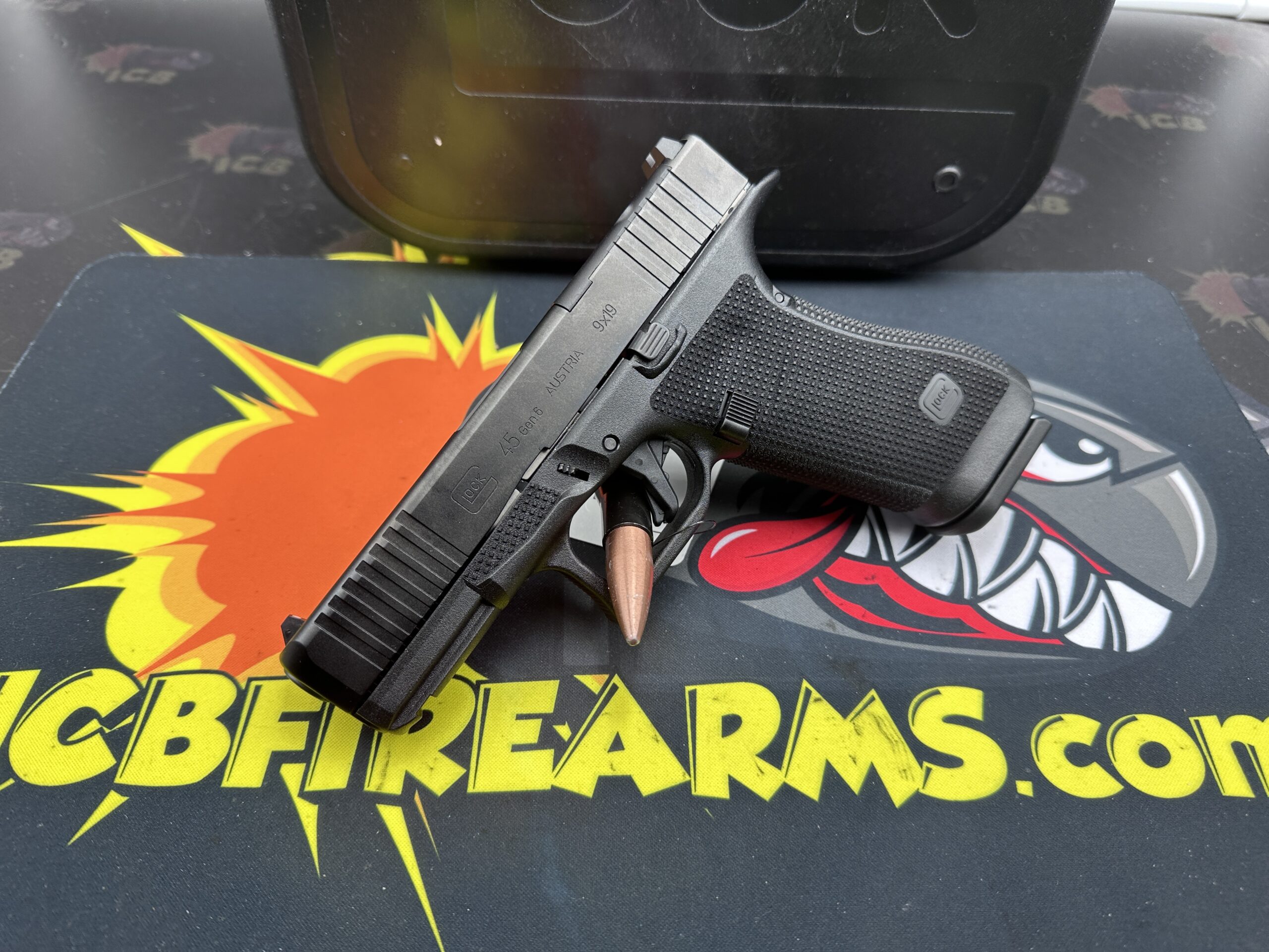 Glock P64550203 G45 Gen6 Crossover Frame 9mm Luger 17+1 4.02″ Black GMB Barrel, Black nDLC Steel Optic Ready/Serrated Slide, Black Polymer Frame w/Accessory Rail, Interchangeable Backstrap Grip