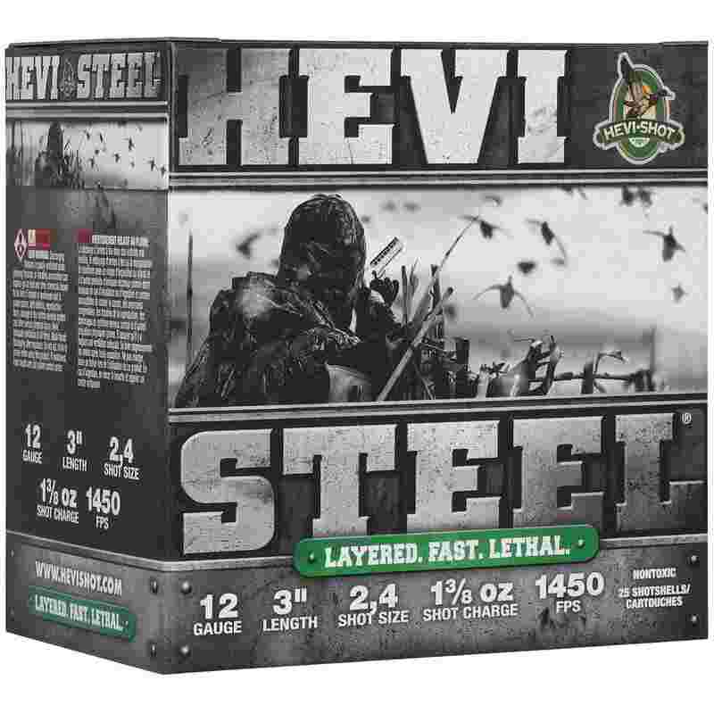 Sometimes speed is everything. The first all-steel shotshell from HEVI-Shot® HEVI-Steel is pushed at higher velocities than competing loads. That speed boost delivers more energy downrange and makes it easier to connect on ducks and geese. Combined with our best-in-class wad HEVI-Steel provides more knockdown power.