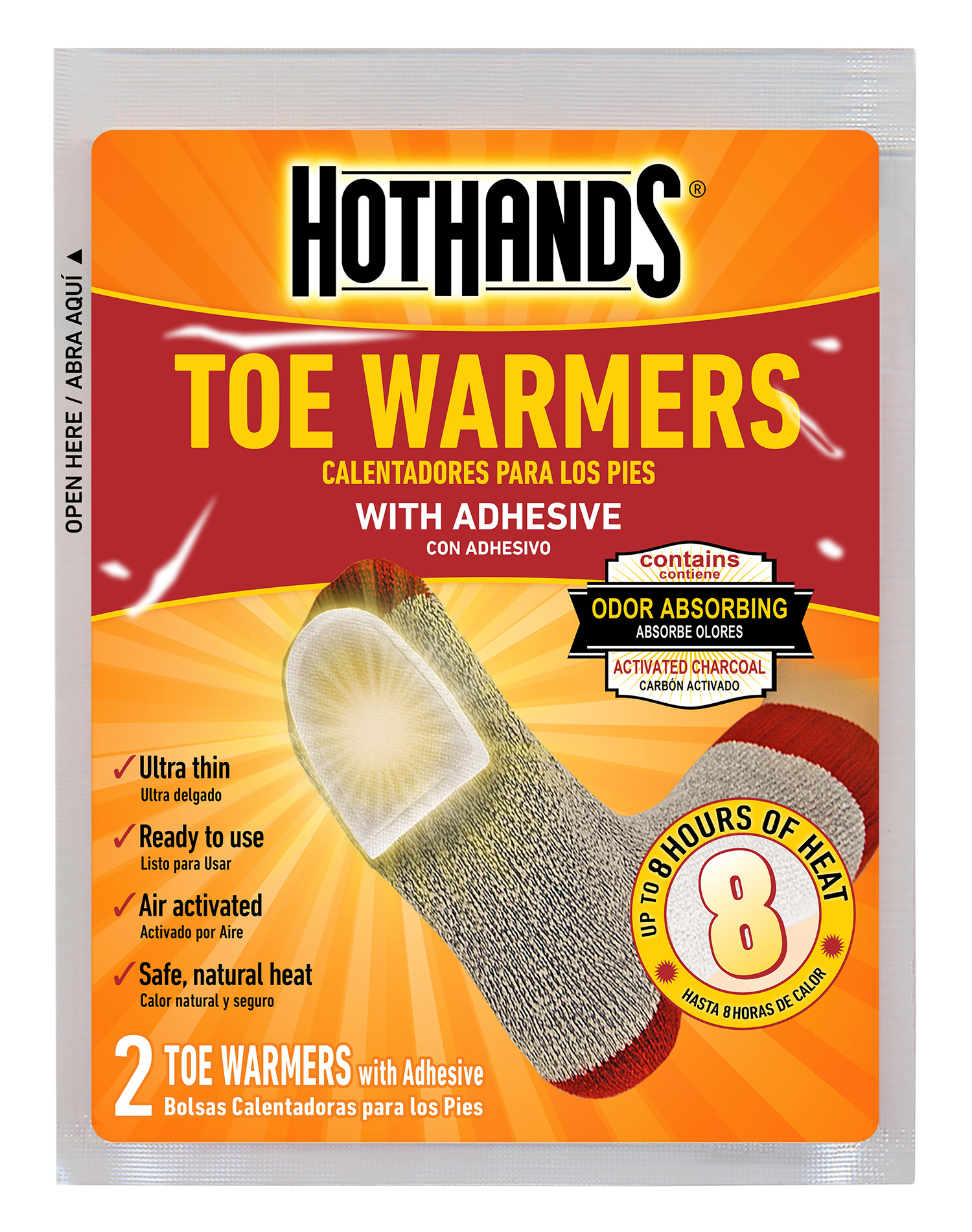 HotHands warmers are single use, air-activated heat packs that provide warmth and are ideal for keeping your toes warm when the temperature gets cold. Ultra-thin and ready to use (just shake to activate), HotHands provide up to 8 hours of heat for the toe area. Features ready to use, odorless fast heat; disposable; TSA approved and 8 hours of heat.
