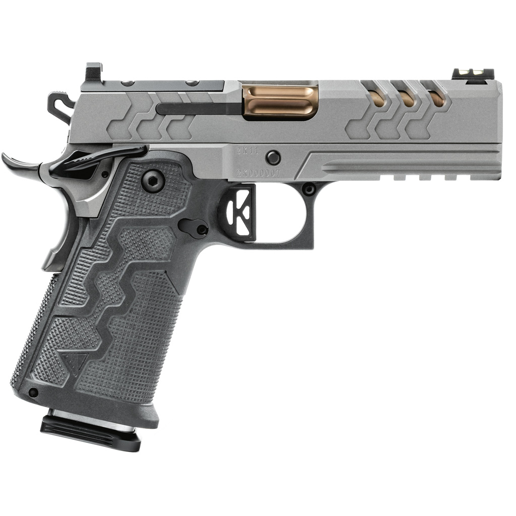 The Kimber 2K11 Pro Stainless Pistol in 9mm sets a new benchmark for 1911 performance. Designed from the ground up with input from Kimber enthusiasts, it features a 4.25-inch bull barrel. The stainless steel slide includes custom 2K11 serrations, an external extractor for reliability, and TAG Fiberlok 2 sights. Its carbon fiber and Kevlar grip module offers lightweight strength and superior handling, along with a stainless steel sub-frame. A toolless guide rod, ambidextrous safety, and the Kimber GT aluminum trigger complete this modern 1911 variant built for precision and control.
