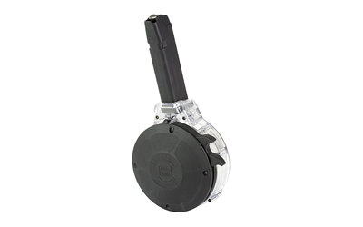 KCI’s 50 round 40 Smith & Wesson Glock pattern drum is a clear glass-filled polymer body and features steel internal components. The load assist lever makes for fast and effortless loading. Disclaimer: Lifetime Warranty VOIDED if customer disassembles magazine! This magazine is not designed to be used with hollow point ammo. For use in Glock patterned pistols.