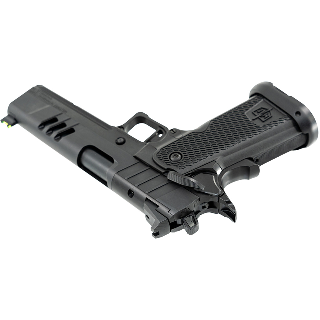 The MAC 9 DS-D Pistol is a high-performance 9mm handgun designed for precision and durability. Featuring a 5-inch bull barrel with an 11-degree target crown, it delivers enhanced accuracy and consistency. The hammer-forged steel slide and black Cerakote frame provide strength and longevity, while the AOS optic cut allows for easy red dot sight integration. A fiber optic front sight and serrated rear sight ensure quick target acquisition, and the skeletonized hammer and trigger with overtravel adjustment offer a crisp, responsive pull. Additional features include an ambidextrous safety, extended beavertail grip safety, and a removable aluminum magwell for smooth handling and faster reloads. With dual 17-round magazines, this pistol is built for shooters who demand top-tier performance.