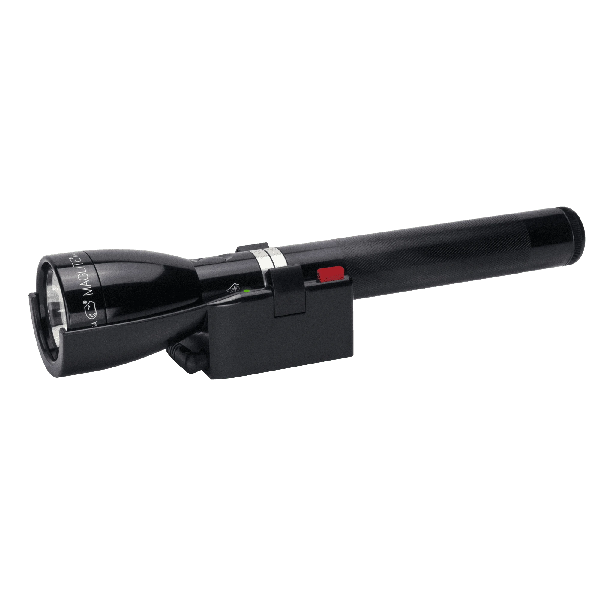The ML150LR offers eco, low, and high power settings as well as a strobe mode, with momentary and constant-on operation, all controlled from a side-mounted push-button switch. The settings are further organized into four function sets: General (high, low, eco), Outdoor (high, low, strobe), Law Enforcement (momentary, high, eco) and Tactical (momentary, high, strobe). Runtimes range from 3.3 hours on high to 79 hours on Eco. Spot-to-flood focus is adjusted with the classic Maglite quarter-turn head-twist mechanism. The light’s three lithium-iron phosphate batteries recharge in about 2.5 hours and are rated for up to 1000 charge/discharge cycles. Measuring 10.7” long and weighing just under a pound, the light features an anodized aluminum housing and is IPX4-rated water resistant. The charging cradle has a status indicator light and an ergonomic quick release button and is designed to grip the light securely, even upside down or in a moving vehicle on rough road.