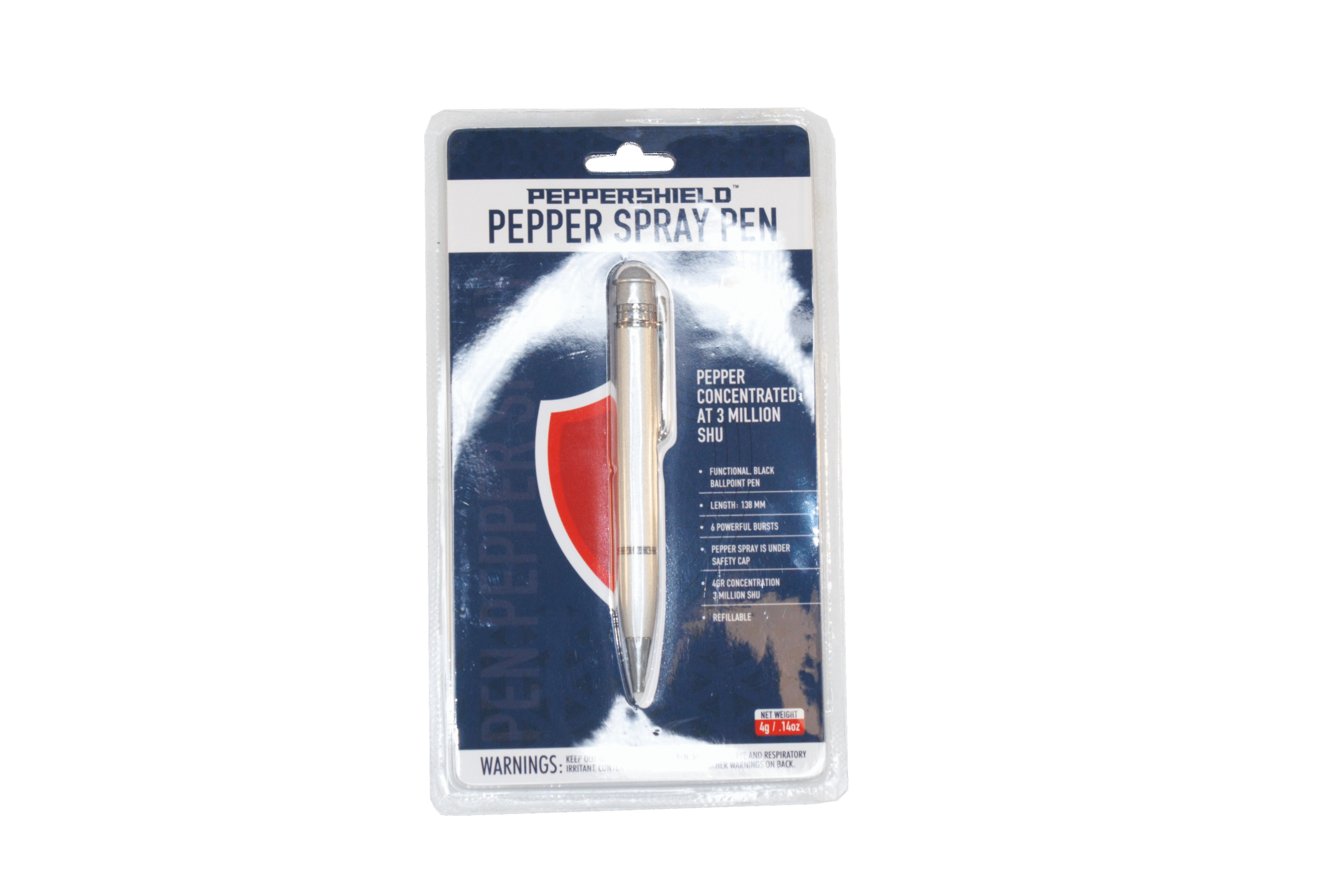 The pen guard pepper spray pen is the perfect companion for your pocket, purse, briefcase, or backpack. The compact and discreet size can go with you wherever you go, packing the full punch of police strength pepper spray in a ballpoint pen-sized hard case. The hinged safety cap flips open to reveal the thumb actuator trigger and special aiming design helps you aim at the target with precision. This pen guard pepper spray pen contains up to 6 powerful bursts of 10% oc pepper formula that shoots up to 5 feet. The compact design of the pen guard pepper spray pen means that it is easy to carry, and easy to use under high stress situations. One-handed operation of the quick access trigger means you can have your pen guard pepper spray readily available at all times.