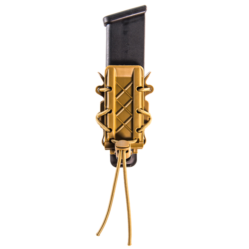 Our patented line of polymer TACOs function much the same as their nylon counterparts. The body and brackets are made with our durable and flexible, proprietary polymer and are laced together with bungee cord for the same versatility our customers have come to expect from the TACO brand. This pouch is specifically designed for short double stack mags of varying calibers, and will also hold small tools, like knives, multitools and flashlights.