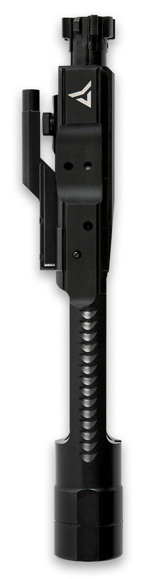 The Enhanced Bolt Carrier Group for AR15/M16 platform weapons was designed to minimize carrier tilt and reduce friction inside the upper receiver by relocating key bearing surfaces. All materials tolerances and coatings meet or exceed milspec standards for performance reliability and durability. – Type: 223/5.56 NATO AR15/M16 (full auto) – Bolt: Case hardened 9310 steel shot peened w/ black nitride finish – Carrier: Billet machined case hardened 8620 steel w/ black nitride finish – Gas Key: 4130 steel attached using Grade 8 hardware and proper staking techniques – Weight: 11.4 oz