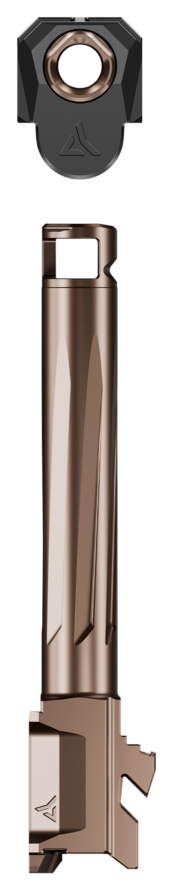 The Radian® AFTERBURNER + RAMJET combo provide unprecedented recoil reduction and match grade accuracy in a concealed carry package. The threadless barrel design allows for effortless install/removal for cleaning while LEGAL FOR SALE IN ALL 50 STATES*. – The AFTERBURNER compensator is machined from hardened stainless steel and the RAMJET barrel from hardened 416R SS; both are enhanced with a Radianite coating. This combination achieves low friction high hardness and high corrosion resistance making overall durability and erosion from muzzle blast a non-issue. Angled front faces on the AFTERBURNER aid in holstering. – The INTRA-LOK® mounting system uses the taper lock principle; a tapered locking screw interfaces with an angled V-groove on the underside of the barrel. This perfectly times the compensator as it locks down onto the upper barrel profile on the muzzle end of the barrel. – INTRA-LOK® allows the user to simply slide the compensator over the barrel insert and tighten the locking screw making for a simple and repeatable installation process. This system allows the user to easily remove the barrel from the slide for cleaning. – Installed onto a Glock G17 the AFTERBURNER + RAMJET combo only increases the overall length of the slide by .47 allowing compatibility with all G34® holsters. – Engineered specifically to run 124 grain and heavier 9MM ammunition. – This combination kit is for: GLOCK G17 GEN5 / G47 / G49 (or compatible) – AFTERBURNER / Hardened SS – RAMJET-SR / Hardened 416R SS – Match grade barrel – Gas sealing chamber – Loaded chamber indicator