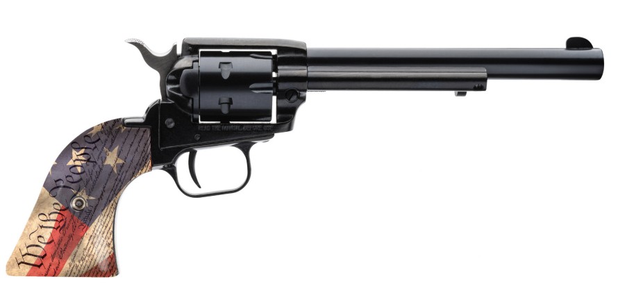 Heritage, MFG# RR22B6-WTP, UPC: 727962710265, UOM: EA, Rough Rider, .22LR, 6.5″ Barrel, Fixed Front Sight, Black, “We The People” Grips, 6-rd, HERI, HERIHG20, HERIHGALL, HG20, HGALL