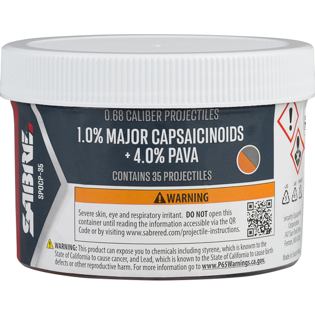 The Sabre Red Pepper Projectiles 35-count refill pack delivers maximum strength red pepper powder for reliable home defense with the Sabre SL-P1C Pepper Projectile Launcher. Each projectile bursts into a 6-foot pepper cloud on impact, causing intense pain and deterring intruders from a safe distance of up to 60 feet. Trusted by law enforcement agencies worldwide, these projectiles provide physical and audible deterrents, giving you the confidence to protect your home and loved ones. Designed for easy use, this refill pack ensures you stay prepared for any situation.