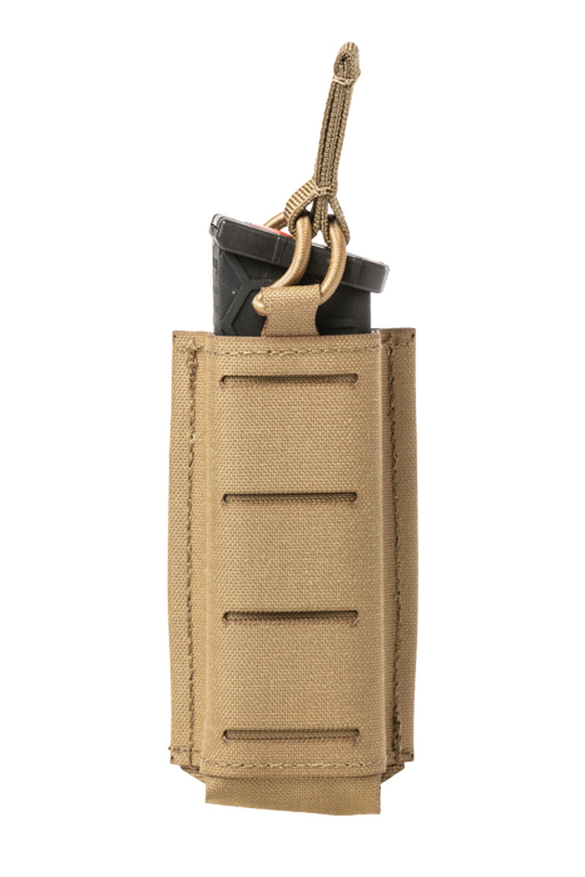SENTRY manufactures a complete line of handgun and rifle magazine pouches. Constructed from multiple layers of high strength Nylon laminate which is laser cut to prevent the material from fraying over time with high use. The unique space saving design eliminates seam tape resulting in a slimmer profile to optimize space on your tactical belt or vest. The Versatile Mounting Platform consists of two components to provide ultimate configurability to meet mission demands: Patent pending 1080-2 mounting system on the front of each pouch provides a secure attachment point for your gear allowing end users to stack or nest pouches. This construction method eliminates traditional Molle webbing providing a lower profile, weight reduction and an overall stronger mounting surface. The innovate mounting platform on the back of each pouch which allows products to be mounted by three methods: SENTRY’s integrated laminate straps provide a lightweight, low profile, secure attachments. Mounting slots supporting traditional MOLLE / PALS attachment Direct to tactical belt via belt slots in either vertical or horizontal orientations.