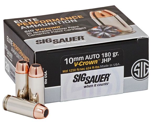 SIG V-Crown defensive rounds combine perfected material specifications and fine-tuned design innovations, including a stacked hollow point cavity, to deliver exceptional on-target energy with maximum weight retention and optimal expansion for ultimate stopping power. SIG V-Crown ammunition creates a consistent V-shaped main cavity on top of a deep narrow trail with superior weight retention, maximum expansion, optimal penetration depth time after time.