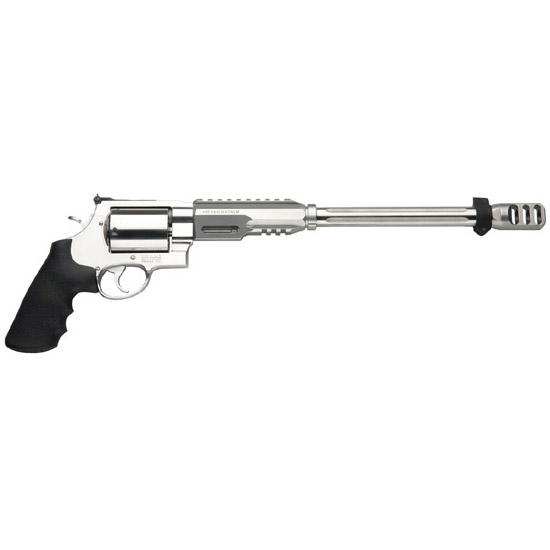 Action: SA/DA – Caliber: .460 S&W Magnum – Capacity: 5 – Finish: Stainless – Material: Steel – Grips: Synthetic – Sights: Black Ramp / Adjustable – Barrel Length: 14 – Overall Length: 21.5 – Weight: 5.5 lb – Muzzle Brake – Chrome Hammer – Chrome Trigger with Trigger Stop – PC Tuned Action – Smith & Wesson’s Model 460XVR has the highest muzzle velocity of any production revolver on earth. The Model 460XVR is so revolutionary that it required an entirely new designation…XVR X-treme Velocity Revolver. Performance Center guns originate from standard designs or are created from the ground up. From hand-cutting and fitting to fine tuning for precision these firearms are top performers. Products from the Performance Center are the ultimate expression of old-world craftsmanship blended with modern technology.