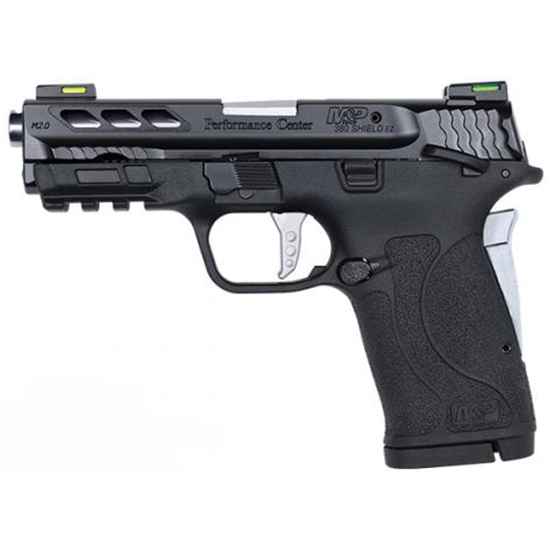 The reality of protection is that you never know when you’ll need it. We took the power and features of our full sized M&P pistols and put them into a slim lightweight pistol the size of your hand. The M&P SHIELD is an easy to conceal pistol that offers professional grade features with simple operation and reliable performance day or night. The Performance Center SHIELD offers discerning shooters premium features including a factory ported barrel and slide. One million Shield owners can’t be wrong. – Features – Ported barrel to reduce muzzle flip – Lightening cuts in slide for reduced weight – PC flat face silver anodized aluminum trigger – PC enhanced silver anodized aluminum grip safety – PC ported barrel – high bright finish – Easy to rack slide – Performance Center action crisp lightweight trigger with tactile and audible trigger reset – HI-VIZ Litewave H3 Tritium/Litepipe Sights – Tactile loaded chamber indicator (TLCI) – see and feel if there is a round in the chamber – Picatinny-style rail – Two easy-to-load 8-round magazines – Model: Performance Center M&P 380 SHIELD EZ M2.0 Silver Ported Barrel – Caliber: 380 Auto – Capacity: 8+1 – Barrel Length: 3.8 / 9.7 cm – Overall Length: 6.9 – Front Sight: HI-VIZ Litewave H3 Tritium/Litepipe Sights – Rear Sight: HI-VIZ Litewave H3 Tritium/Litepipe Sights – Action: Internal Hammer Fired – Weight: 18.5 oz / 524.5g – Barrel Material: Stainless Steel – Slide Material: Stainless Steel – Frame Material: Polymer – Slide Finish: Armornite – Frame Finish: Matte Black