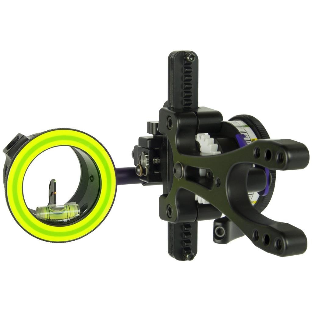 Adjustable sight that borrows features from the Tommy Hogg, but in a much lighter and sleeker package. Features a rugged and lightweight hard mount, micro-adjust 2nd and 3rd axis, and tool-less horizontal and vertical adjustments. Uses a silent, quick release locking yardage knob and click free yardage adjustment wheel. Made from 6061 aluminum. **NO California PROP-65 Warning Label**