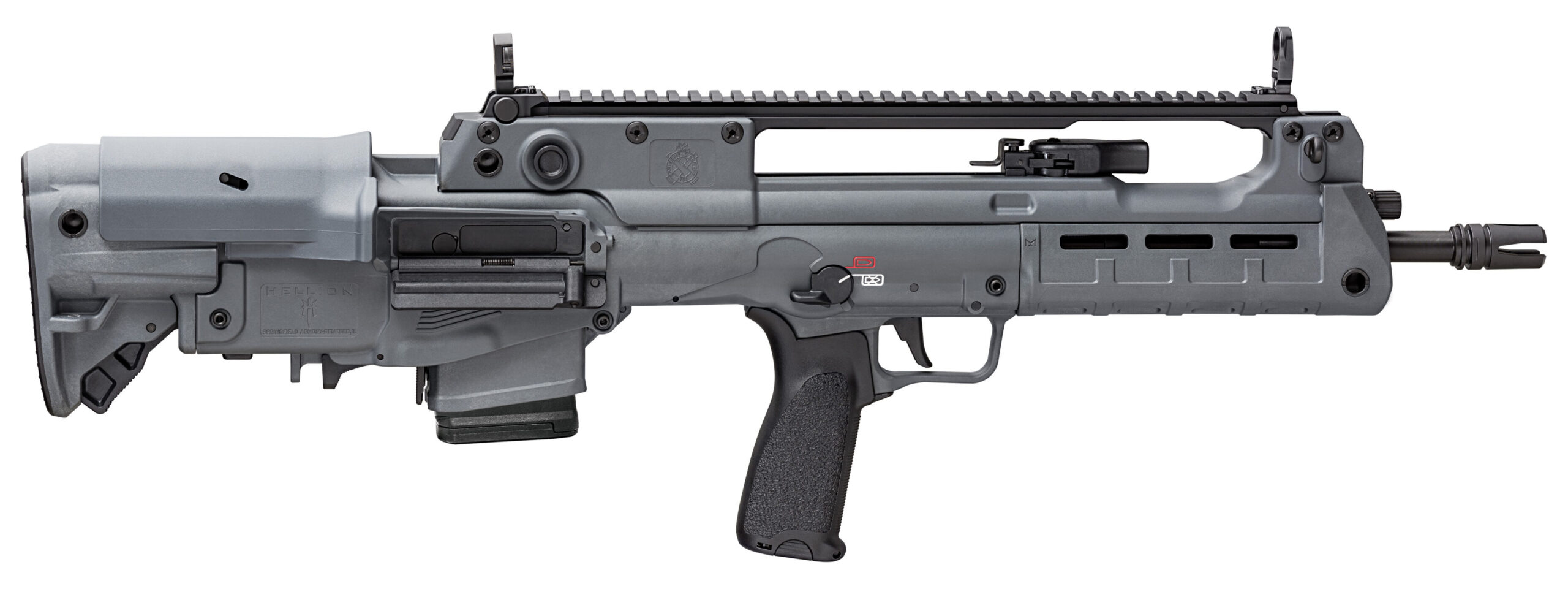 The low capacity Hellion featuring a new distinctive gray finish offers a fresh take on this 5.56mm semi-automatic rifle. Its bullpup design positions the action behind the trigger resulting in a compact 28.25-inch length while still maintaining a 16 barrel. Equipped with ambidextrous controls and a reversible case ejection system the Hellion seamlessly combines portability with potent performance and ships with a 10-round magazine for customers in restricted states. – Caliber 5.56x45mm NATO (.223 REM) – Color Gray – Barrel 16 CMV Melonite® 1:7 – Front Sight Integrated Flip-Up Elevation Adjustable – Rear Sight Integrated Flip-Up w/ 5-Position Aperture Windage Adjustable – Bolt Carrier Group Proprietary Melonite® – Gas System 2-Position Adjustable Short Stroke Piston – Handguard Polymer M-Lok® – Stock 5-Position Adjustable w/ Cheek Riser – Muzzle Device 4-Prong Flash Hider – Charging Handle Ambidextrous Non-Reciprocating – Safety Switch Ambidextrous – Grip BCMGUNFIGHTER Mod 3 – Magazines (1) 10-Round Magpul PMAG Gen M3 – Weight 8 lbs – Length 28.25-29.75