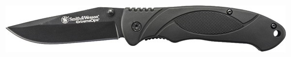 -Smith & Wesson Extreme Ops Liner Lock Folding Knife Clip Point Blade Rubber Handle