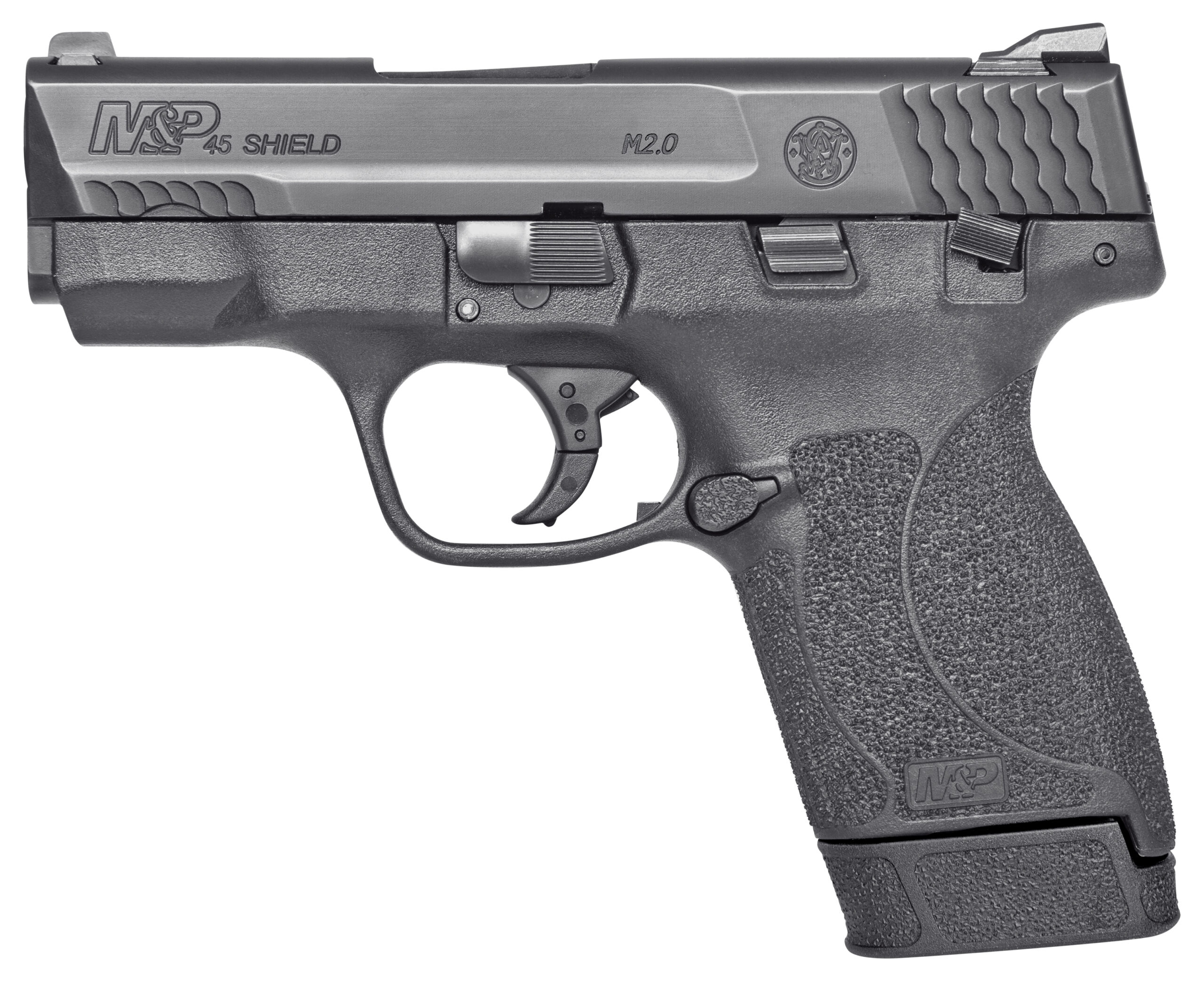 The M&P45 Shield M2.0 is an easy-to-conceal pistol that offers professional-grade features simple operation and reliable performance. With its aggressive grip texture crisp trigger and thin profile it can be comfortably carried all day. – CALIBER 45 AUTO – BARREL LENGTH 3.3 – CAPACITY 7+1 rounds – Model M&P45 Shield M2.0 – Weight 20.5 oz. (581.2 g) – Rear Sight 2 White Dots – Grip Slim textured – Front Sight White Dot – Width 1.05 (2.6 cm) – Barrel 3.3 (8.4 cm) Stainless steel w/Armornite® finish – Overall Height 5.0 (12.7 cm) – Frame Size Compact Slim – Slide Stainless Steel with Armornite® finish – Overall Length 6.45 (16.4 cm) – Action Striker-fired semi-automatic – Frame Black Polymer – Sight Radius 5.3 (13.5 cm) – Rifling 1:15 Twist