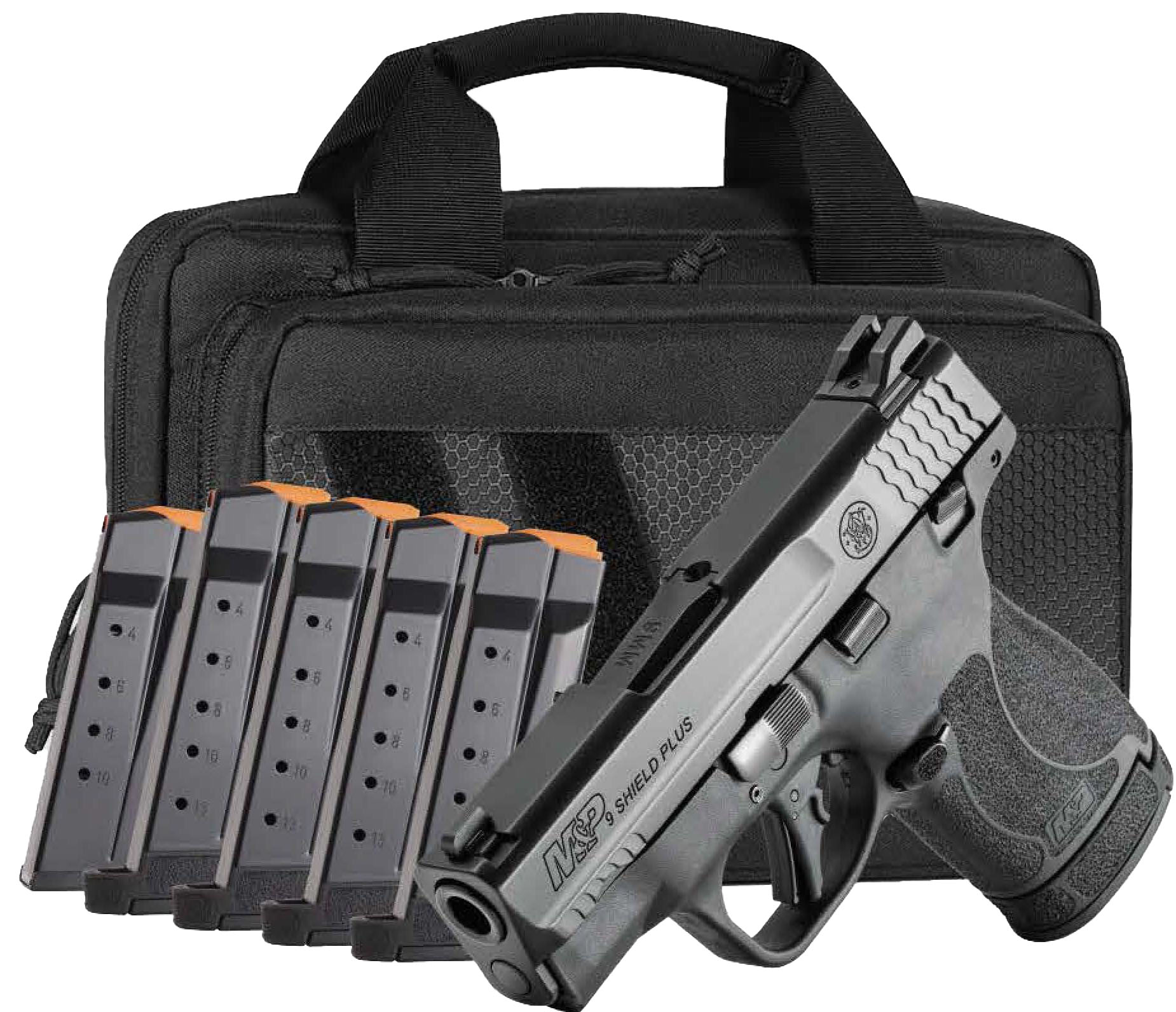 Flat face trigger for consistent trigger finger placement that allows for more accurate and repeatable shooting. – Enhanced grip texture allows the user to manage recoil keep a firm grip and delivers comfort when concealing. – Extended magazine offers 13+1 round capacity. For more concealable option we offer a flush-fit 10 round magazine. – 13 round and 10 round magazines included. – Tactile and audible trigger reset. – Extremely thin and lightweight -can be comfortably carried all day. – M&P’s patented take-down lever and sear deactivation systems all for disassembly without pulling the trigger. – Optimal 18-degree grip angle for natural point of aim. – Armornite durable corrosion resistant finish. – Backed by Smith & Wesson’s Lifetime Service Policy. – Model M&P 9 SHIELD PLUS Manual Thumb Safety – Caliber 9mm Luger – Capacity 10+1 13+1 – Safety Manual Thumb Safety – Length 6.1 – Front Sight White Dot – Rear Sight White 2-Dot – Action Striker Fire – Grip Polymer – Barrel Material Stainless Steel with Armornite Finish – Slide Material Stainless Steel with Armornite Finish – Frame Material Polymer – Slide Finish Matte Black – Frame Finish Matte Black – Barrel Length 3.1 (7.9 cm) – Weight 20.2 oz. – Includes: – M&P®9 Shield® Plus TS 6 Total Mags – With either a standard 10+1 round or 13+1 extended 9mm magazine the new Shield Plus is a modern fit for everyday carry. – Savior® Specialist Bag – The Savior Specialist bag with its unique front panel is designed and tested specifically for professionals. Features on this pistol case are tailored to hold all your range day accessories.