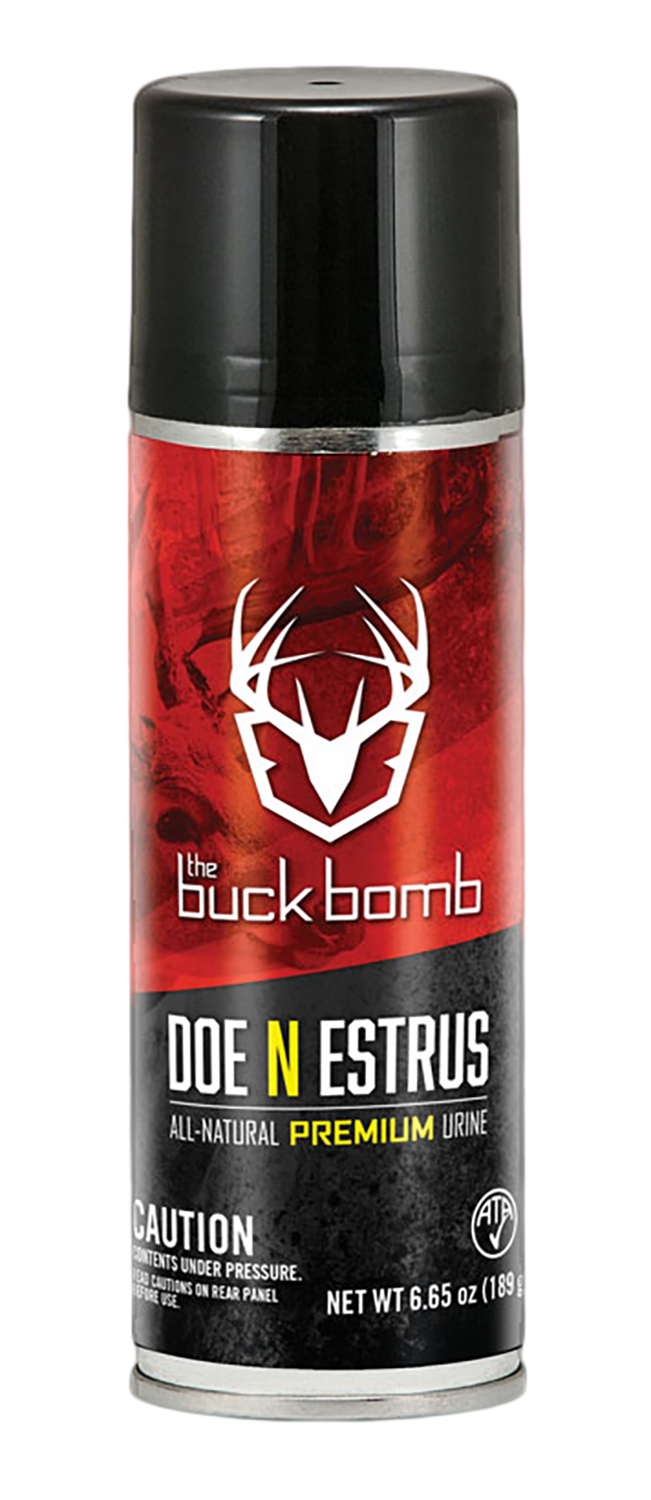 The Buck Bomb Doe in Estrus contains 6.65 ounces of pure, fresh doe-in-heat urine. Its the most efficient and effective way to lure cruising bucks to your stand from the pre-rut through the peak of the breeding period.