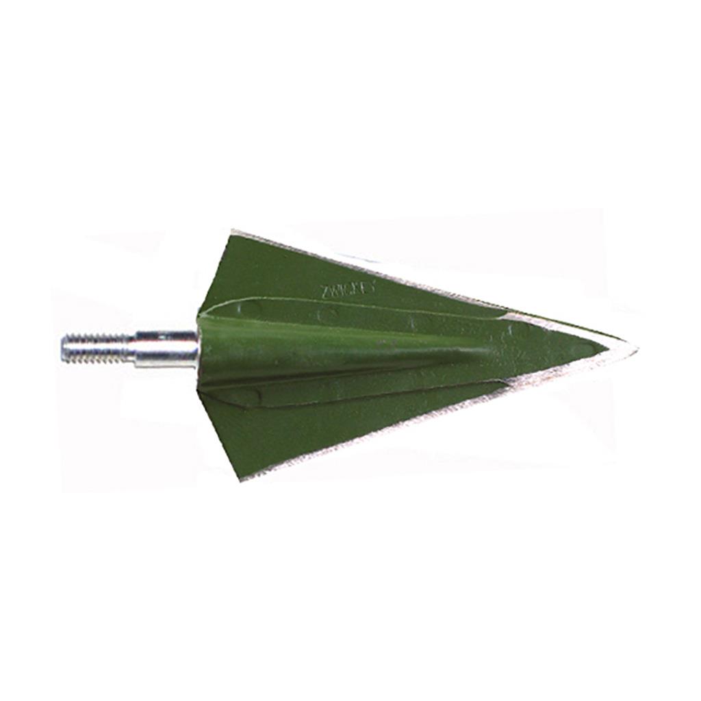High-carbon steel, rugged enough to slice through bone, rigidly fixed. 3 per pack. 2 blade, 170 gr., 1 3/8″ diameter, 2 9/16″ length. steel point, no bleeders.